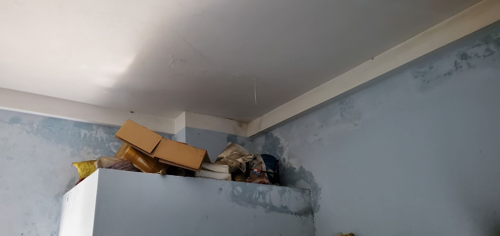 + Các chân tường sàn mái có dấu hiệu ẩm mốc, Các mảng sơn bị bong
