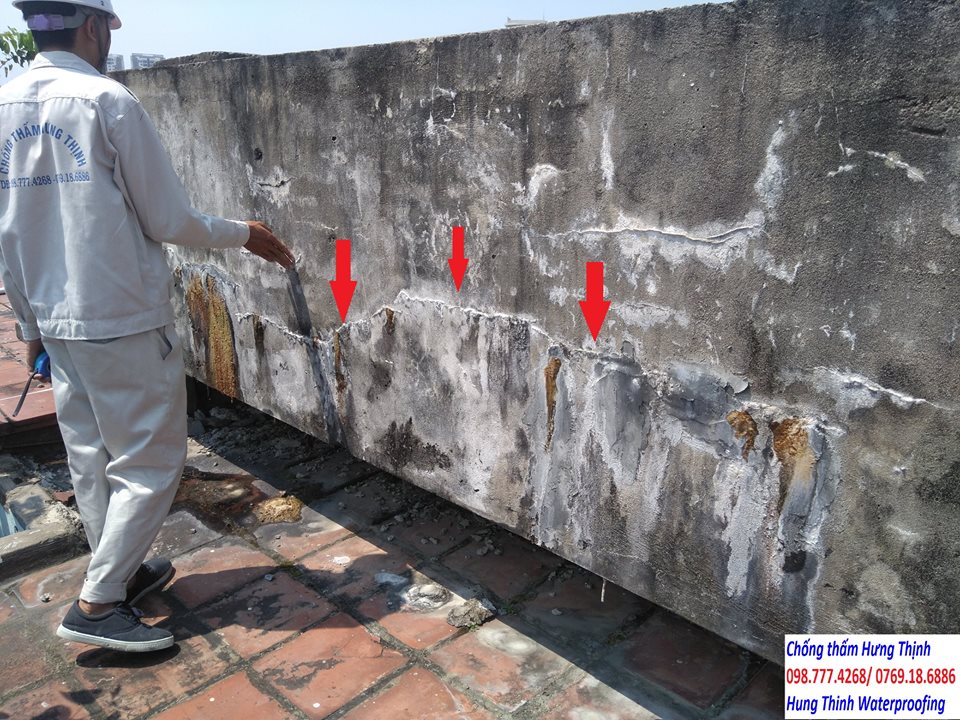 - Waterproofing treatment of wall foot, wall crack, bird crack crack ... in Nong Son, Quang Nam.