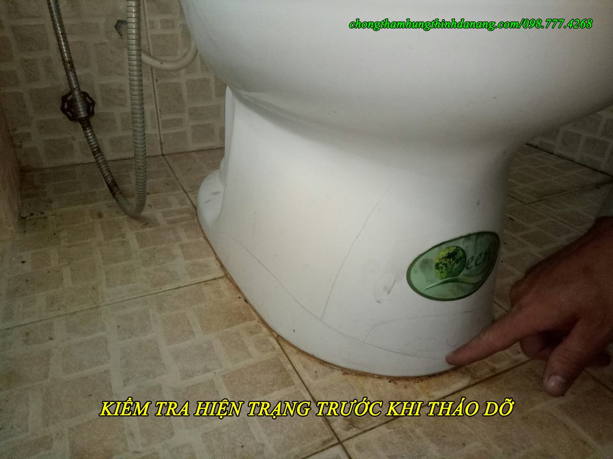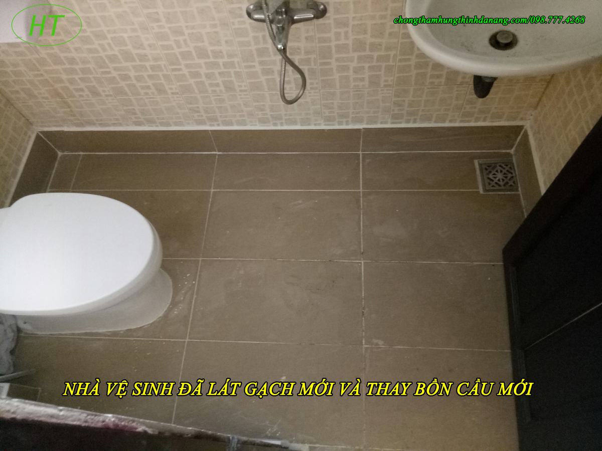 The home of Mr. Long's family, a Manager at Toyota Da Nang was leaking 2 toilets, the toilet was damaged, and the water flow was unpleasant. He decided to use the services of Hung Thinh Waterproofing with waterproofing technology on the tile floor to solve his discomfort.